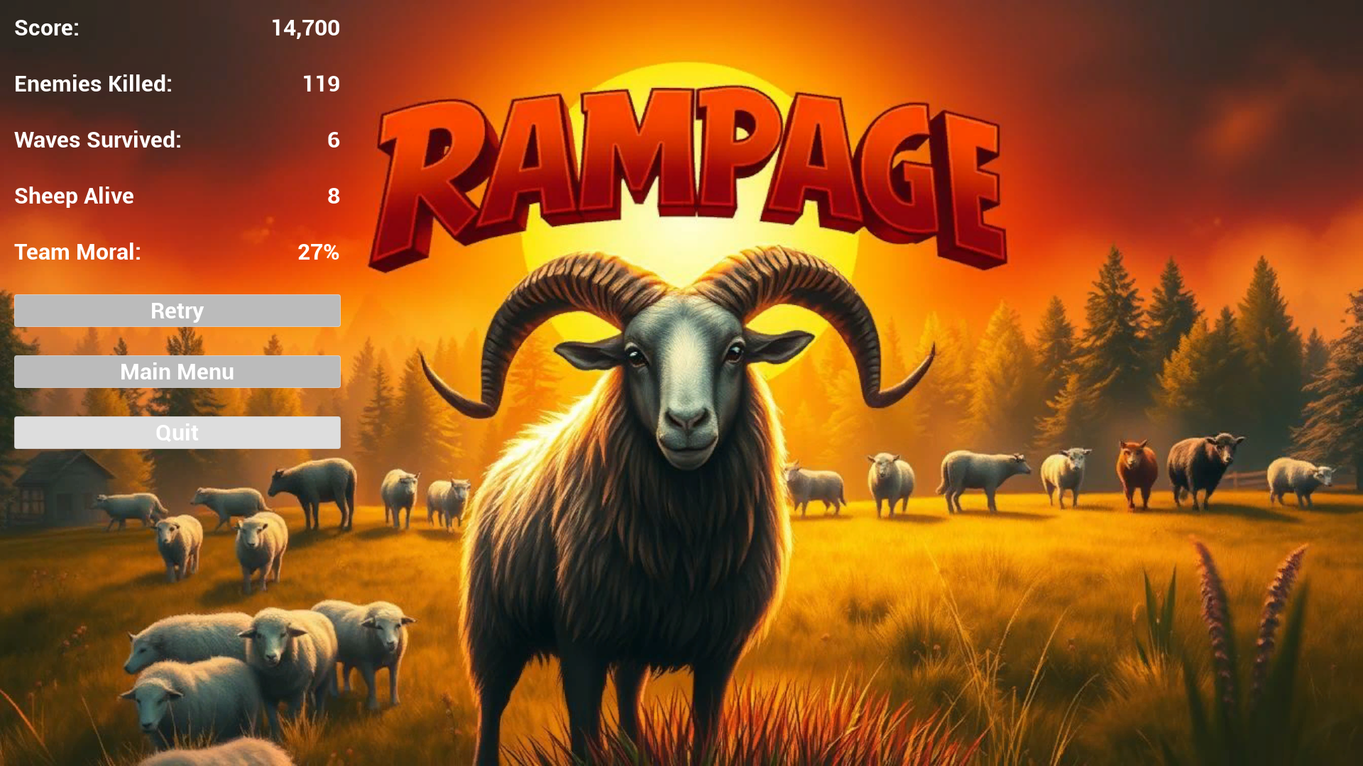 The herd is in danger, and only you stand between your sheep and the pack of ravenous wolves. In RAMpage, you take control of a powerful ram goat tasked with protecting the herd. With each wave, the wolves grow bolder, and it’s up to you to kick, headbutt, and outlast them before they make you into dinner.